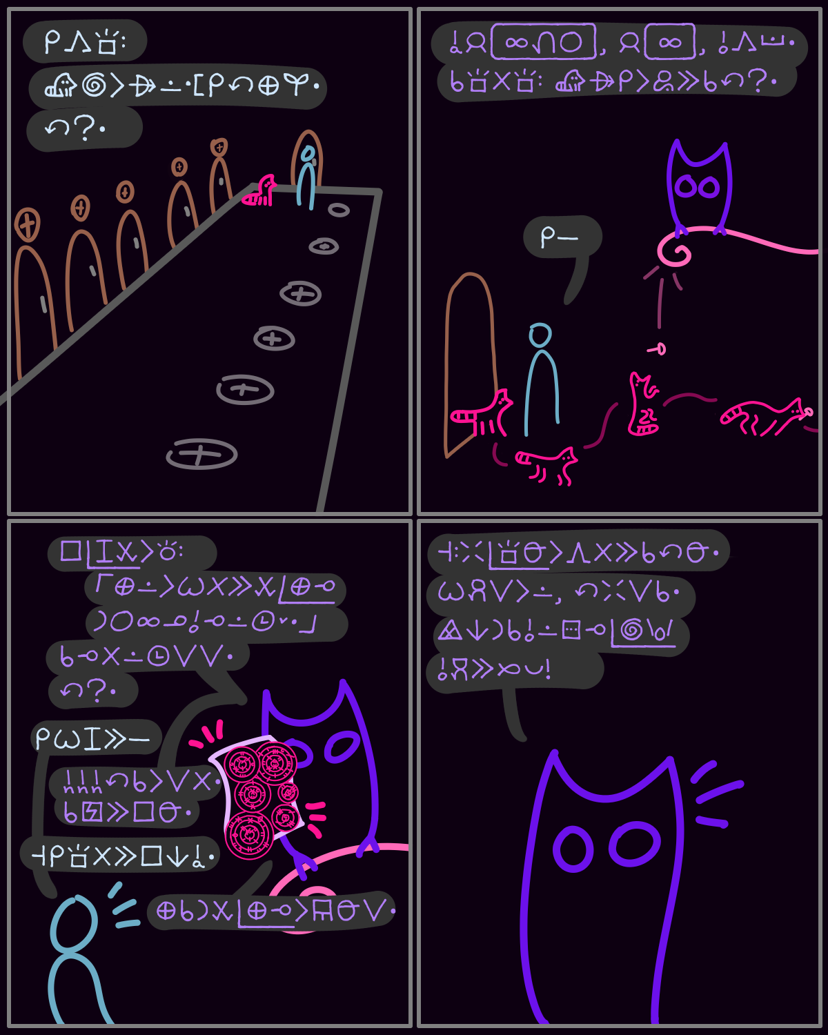 — tenpo pi ma sin li kama a! sina kute e toki suli! toki mi li toki sama toki pi tenpo ala.