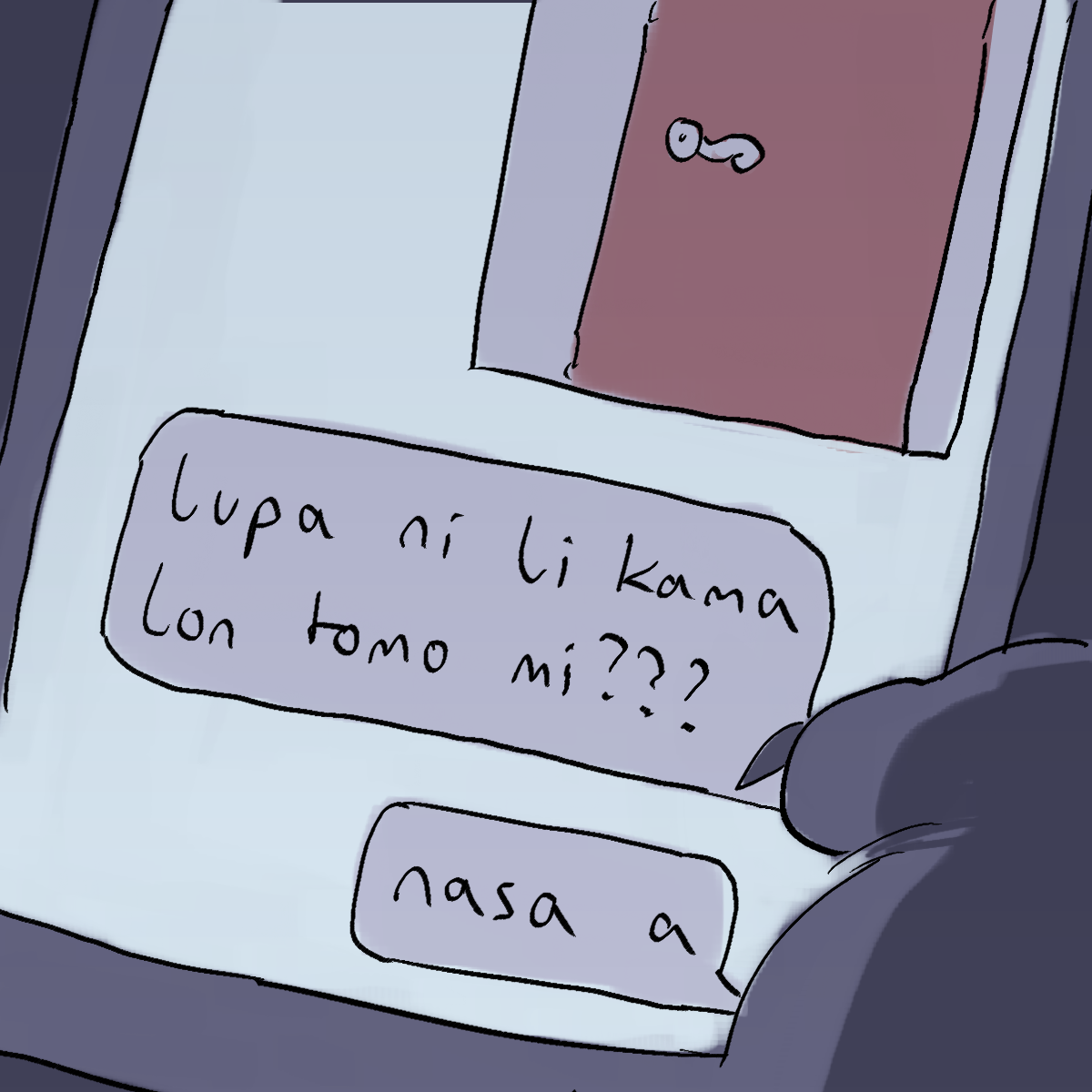 jan li lukin ala e toki mi. mi poki e ilo. mi tawa pali mi. taso, sona lupa li weka ala. pali la, mi sona e lupa. moku la, mi sona e lupa. tawa pi tomo mi la, mi sona e lupa.